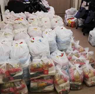 Foram 55 cestas adquiridas ou recebidas e doadas nessas duas campanhas, totalizando cerca de 700 quilogramas de mantimentos destinados às famílias que mais precisam.